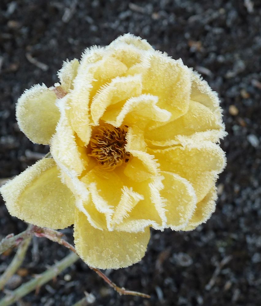 For once I had my camera with me, and for once Molly sat quietly and waited for me every time I saw a leaf so thick with frost, you could see each and every crystal.