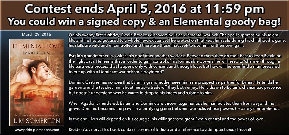 On his twenty-first birthday, Evrain Brookes discovers he is an elemental warlock. The spell suppressing his talent lifts and he has to get used to a whole new existence. The protection that kept him safe during his childhood is gone, his skills are wild and uncontrolled and there are those that seek to use him for their own gain.
