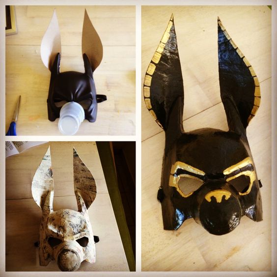 This particular image is all over Pinterest, but no amount of googling has come up with the source. Thankfully the images are self-explanatory when it comes to constructing this. So whoever it was created this—kudos for making a quite brilliant Anubis from nothing more than a plastic Batman mask, a plastic cup, a couple of cardboard ears and a lot of papier maché and paint. Well done!