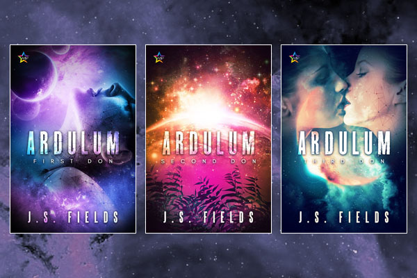 It’s a pleasure to welcome J. S. Fields to the blog today to tell us about Ardulum, her F/F space opera that she describes as “… more SF than romance, but definitely romance elements so… slow burn? Is that a trope? Soul mates trope for sure!” A pleasure because there are all too few f/f stories in the genre and it’s nice to be able to give one a bit of a push, but also because those are three utterly lovely covers.