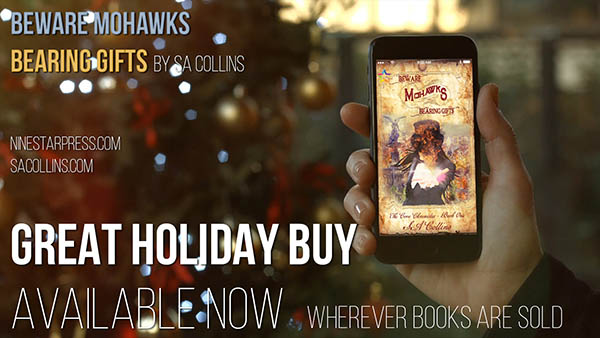 SA Collins has a new queer alt-earth sci fi book out, book one in the Cove Chronicles: “Beware Mohawks Bearing Gifts.” I don’t know about you, but I love intriguing titles, and when that’s combined with a cover that eschews the beefcake so prevalent in LGBT fiction, this book looks very attractive. Am adding it to the TBR pile, pronto.