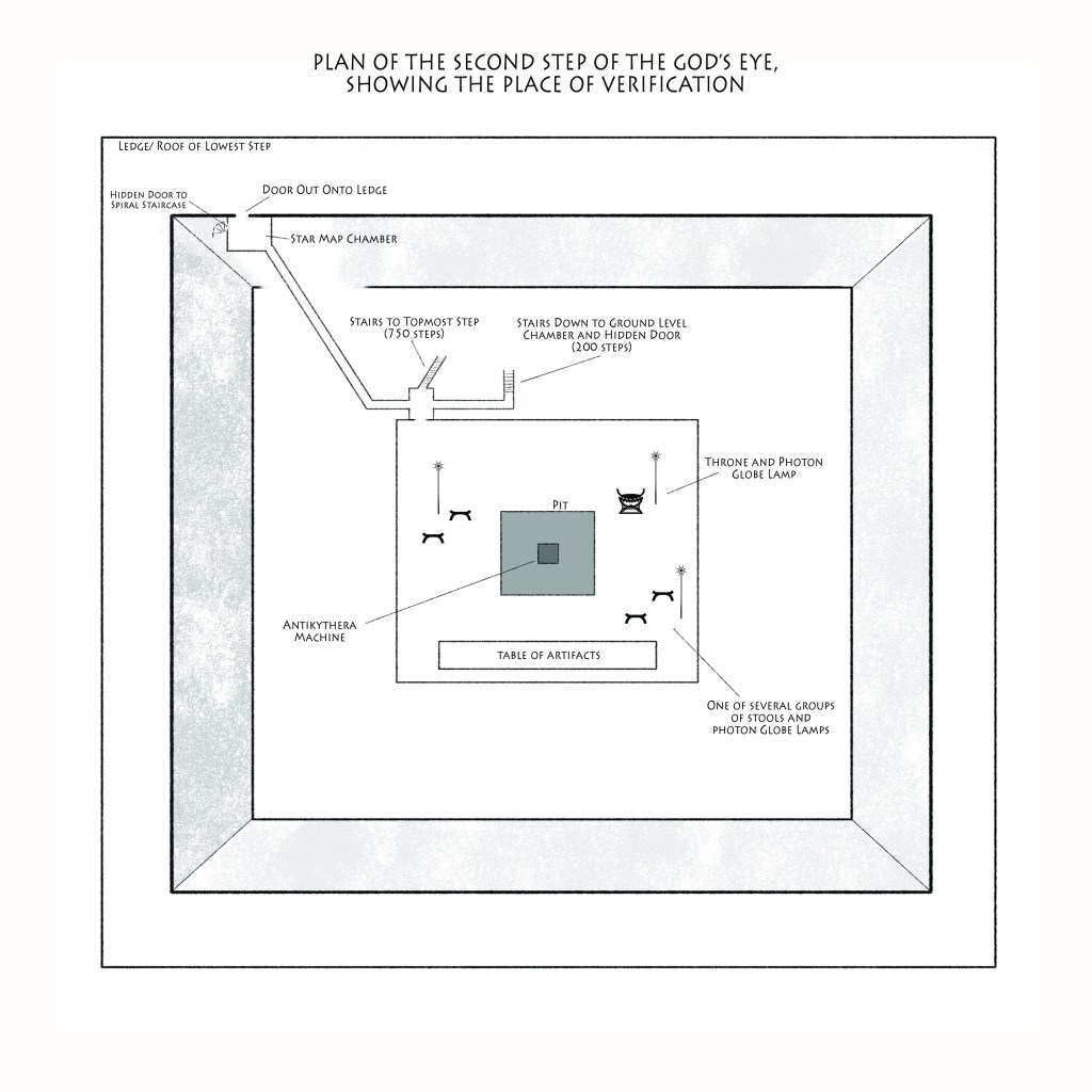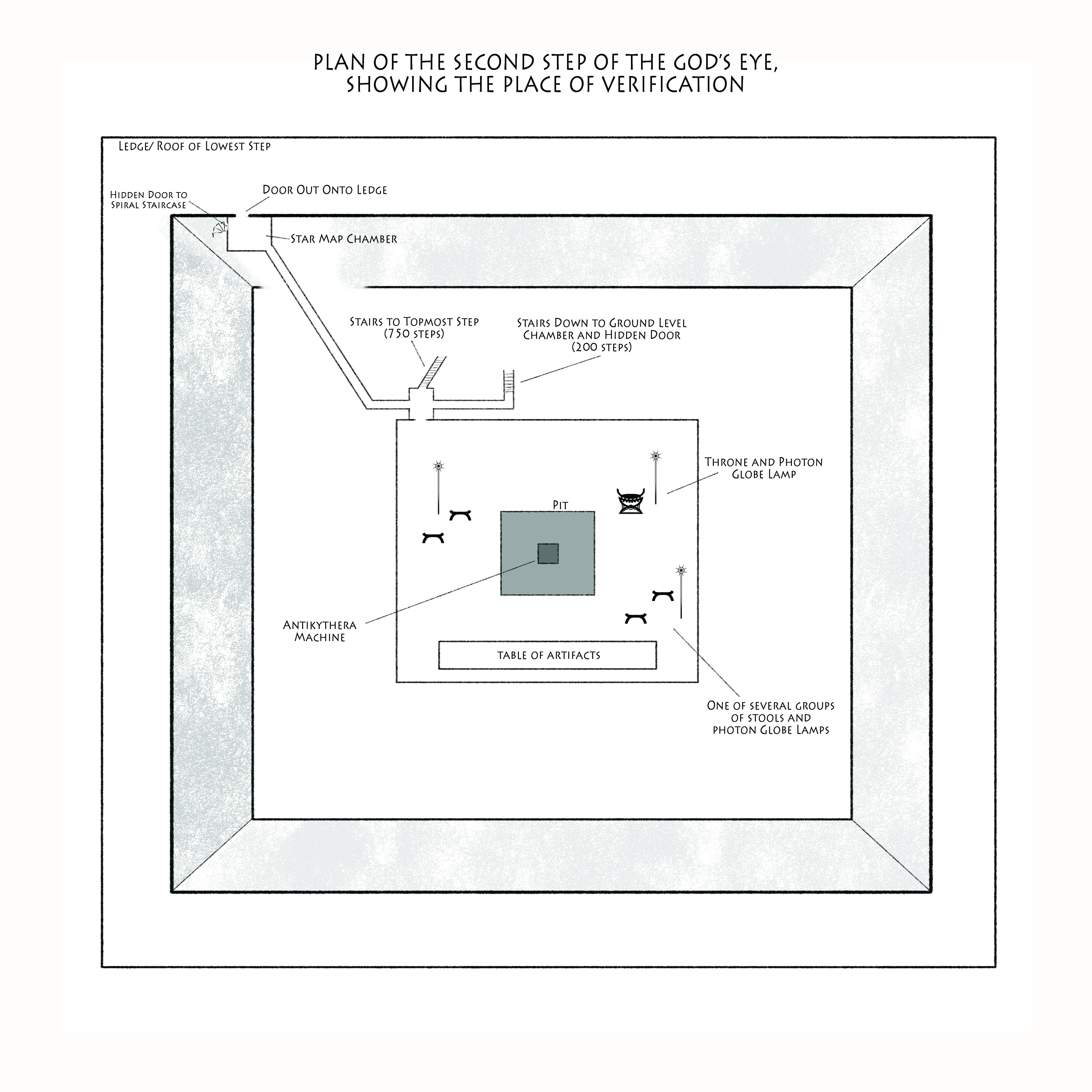 Plan diagram of the second step, showing the various chambers, stairs and passageways crucial to the plot.