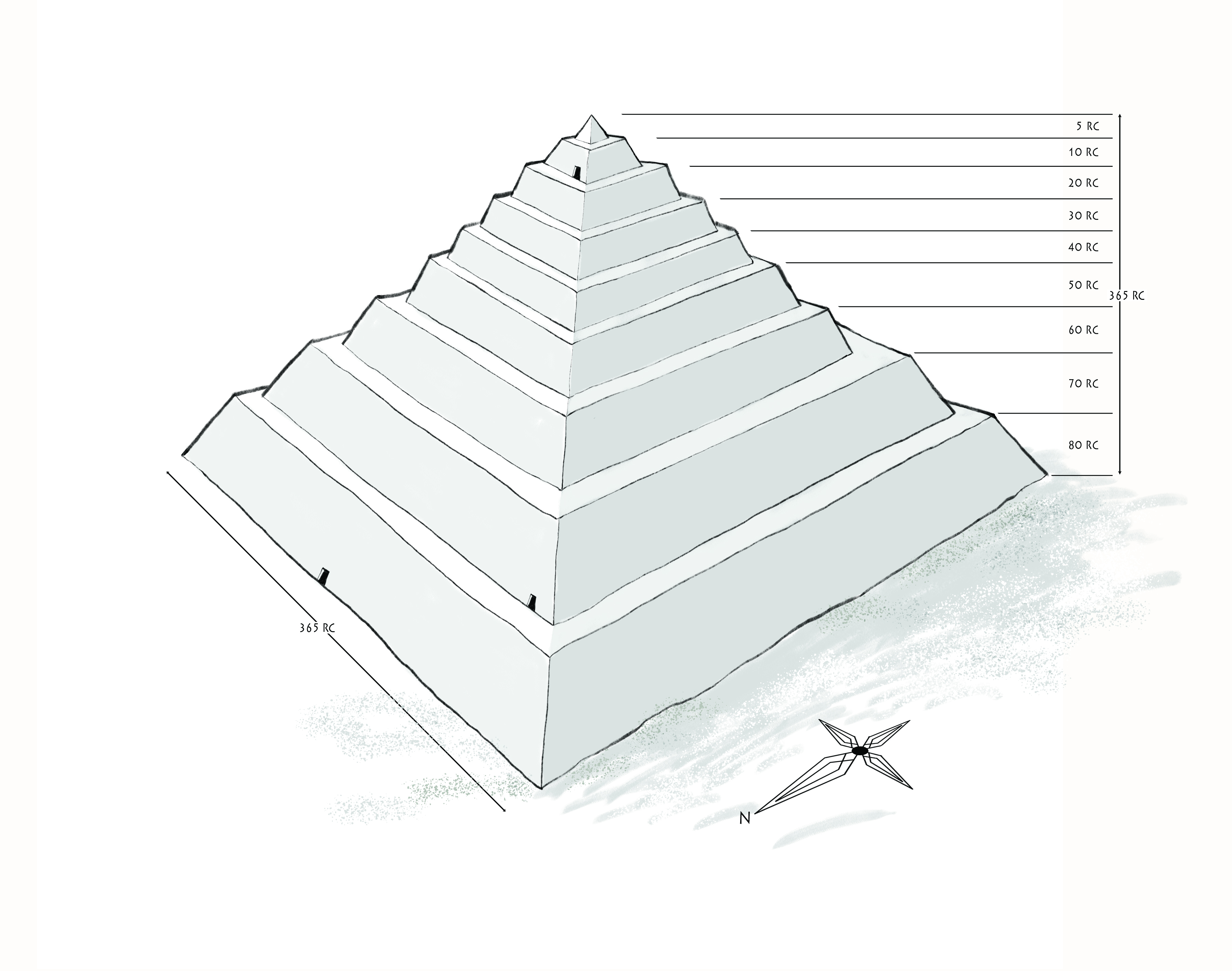 Plan diagram of the first (ground-level) step of the pyramid, showing various crucial chambers, staircases and corridors.